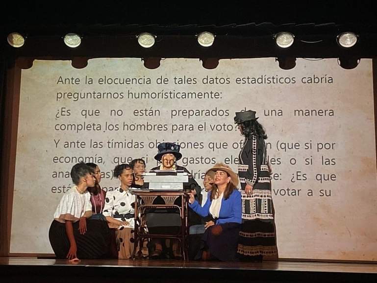 Esta pieza teatral contemporánea dramatiza los hechos que acontecieron a las mujeres denominadas sufragistas en la República Dominicana, las cuales crearon una agrupación literaria llamada » Nosotras» donde un grupo de mujeres intelectuales de la época forjaron los ideales y foros de libertad femeninos.